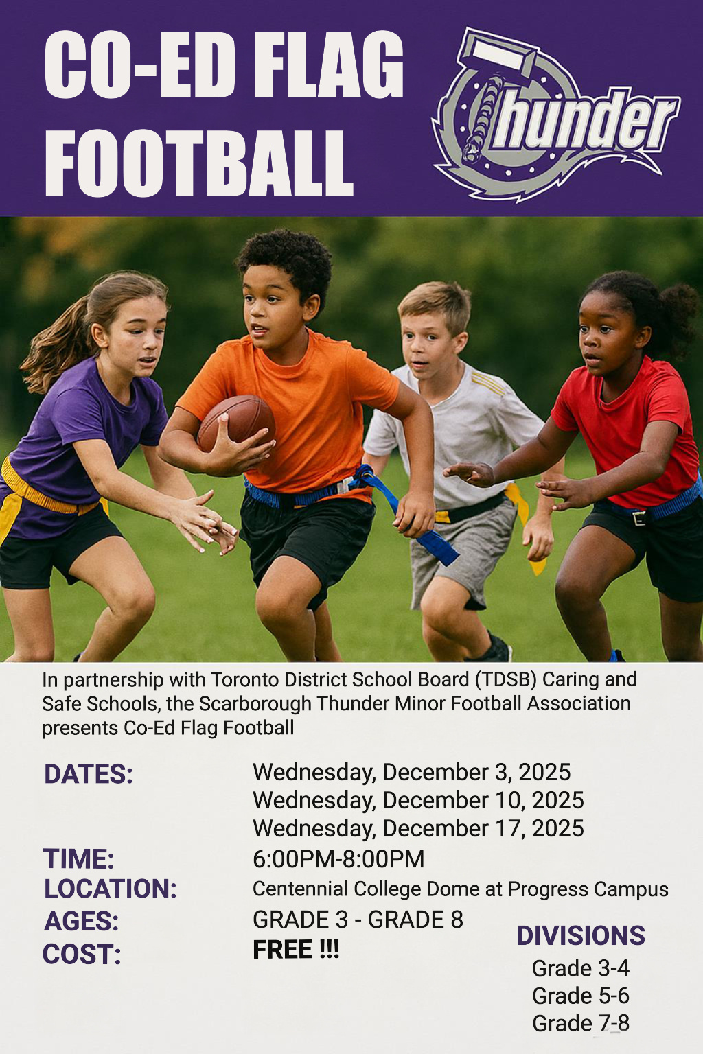 The Scarborough Minor Football Association (SMFA) is a non-profit organization formed in 1987 to provide youth (ages 6–19) in Scarborough and the surrounding areas with the opportunity to play football. The Thunder is a proud Ontario Summer Football League (OSFL) member, a fully sanctioned league encompassing 39 Organizations across Ontario, from Windsor to Cornwall to Sault Ste. Marie. This is the largest tiered football league in Canada.
